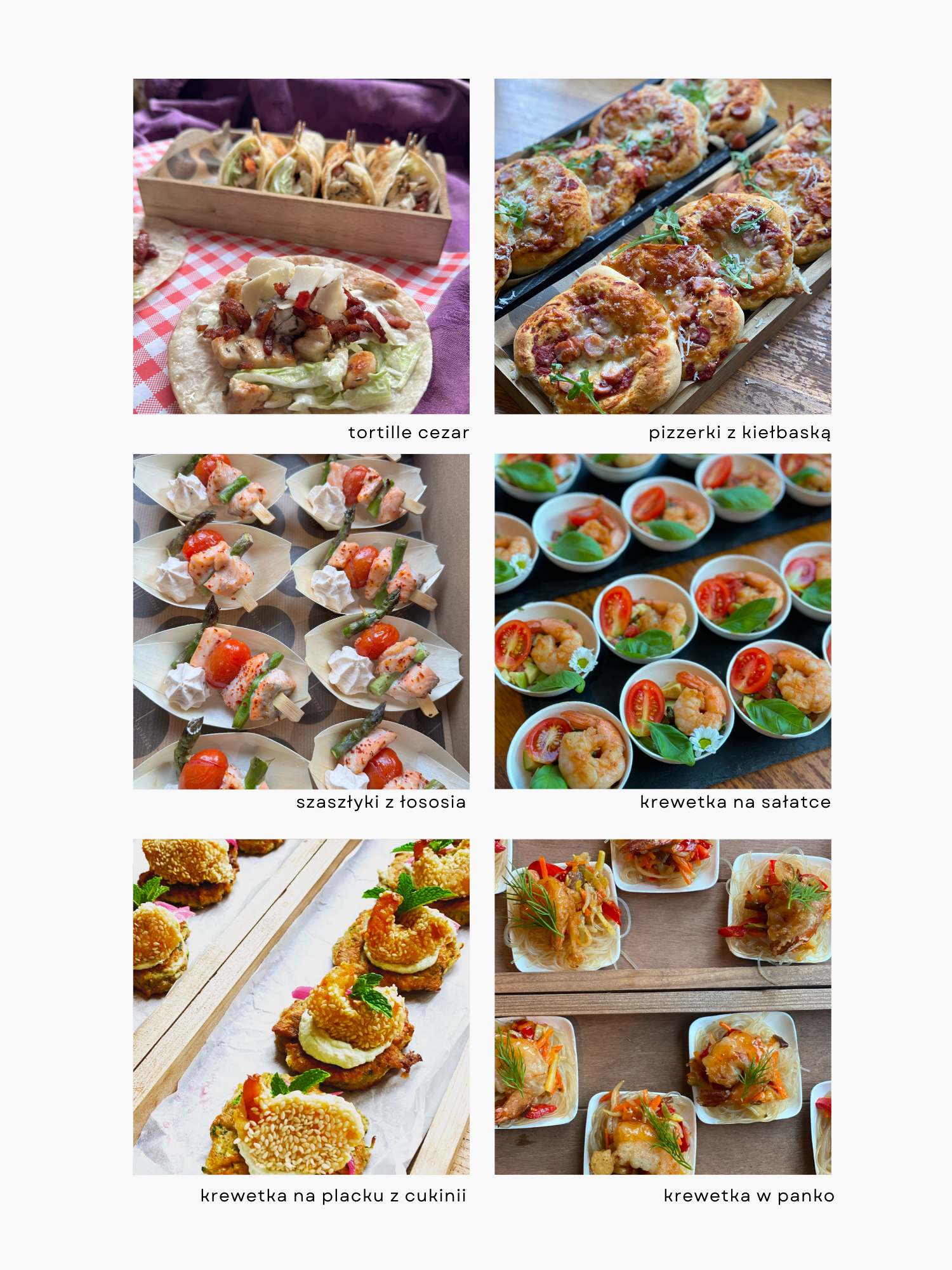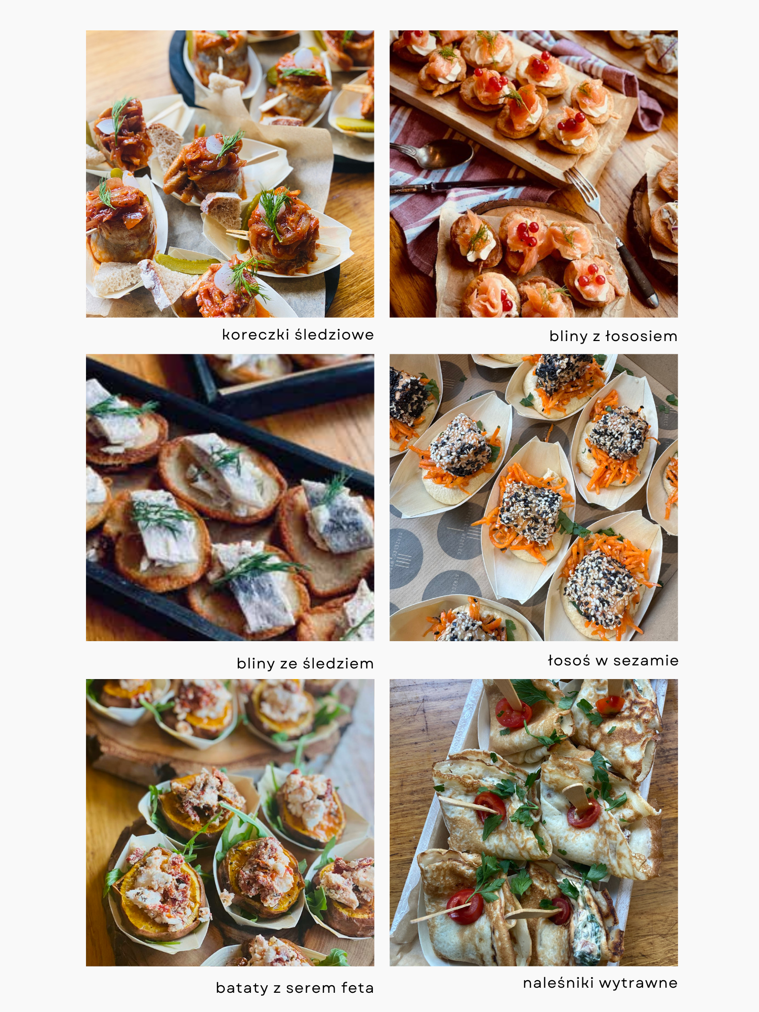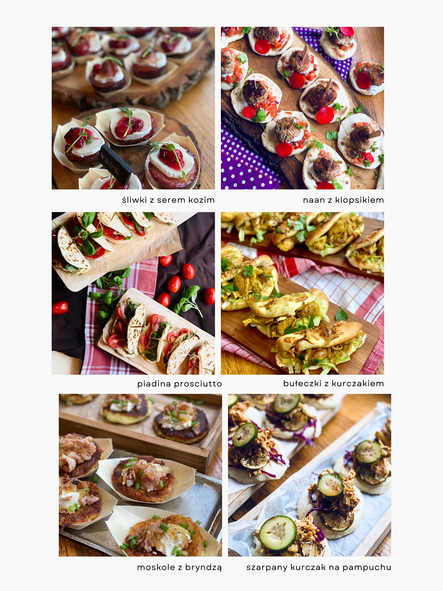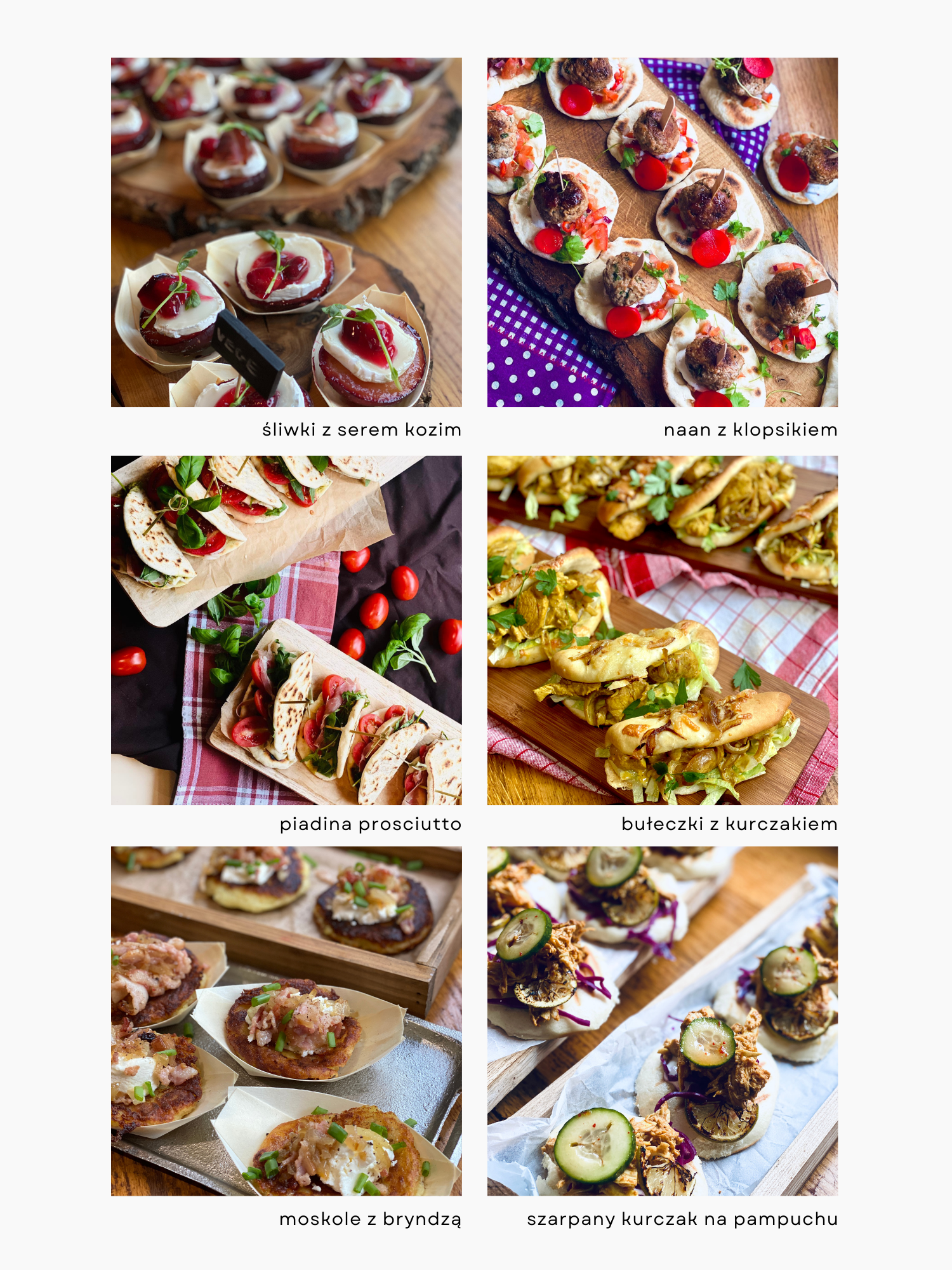 Przekąski mięsne, rybne, wegetariańskie, wegańskie, słodkie, dania obiadowe