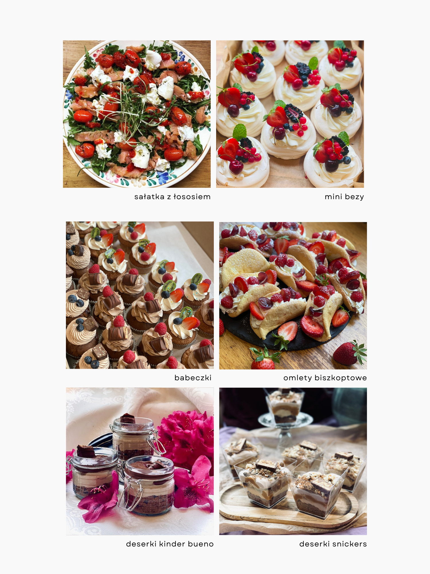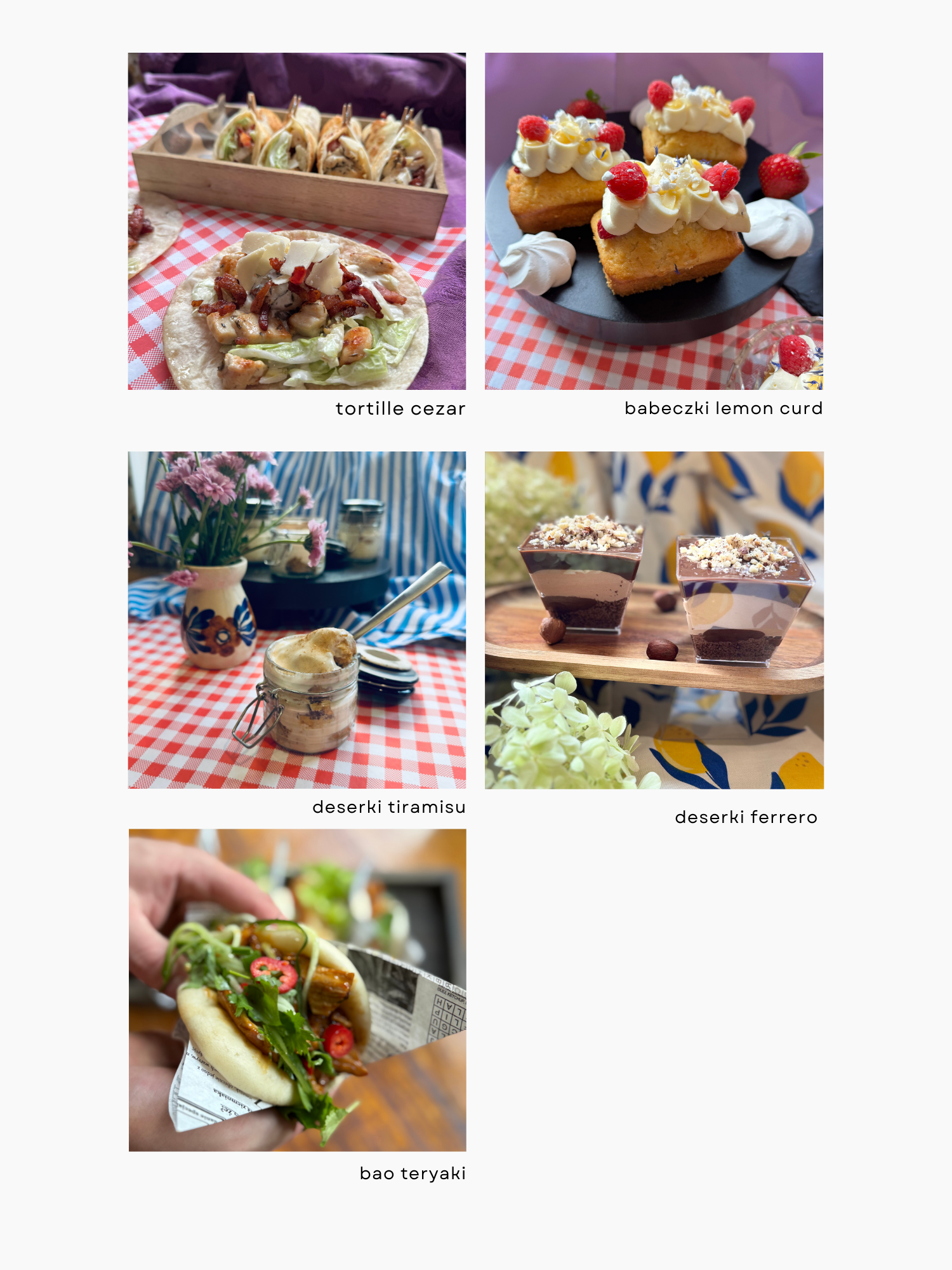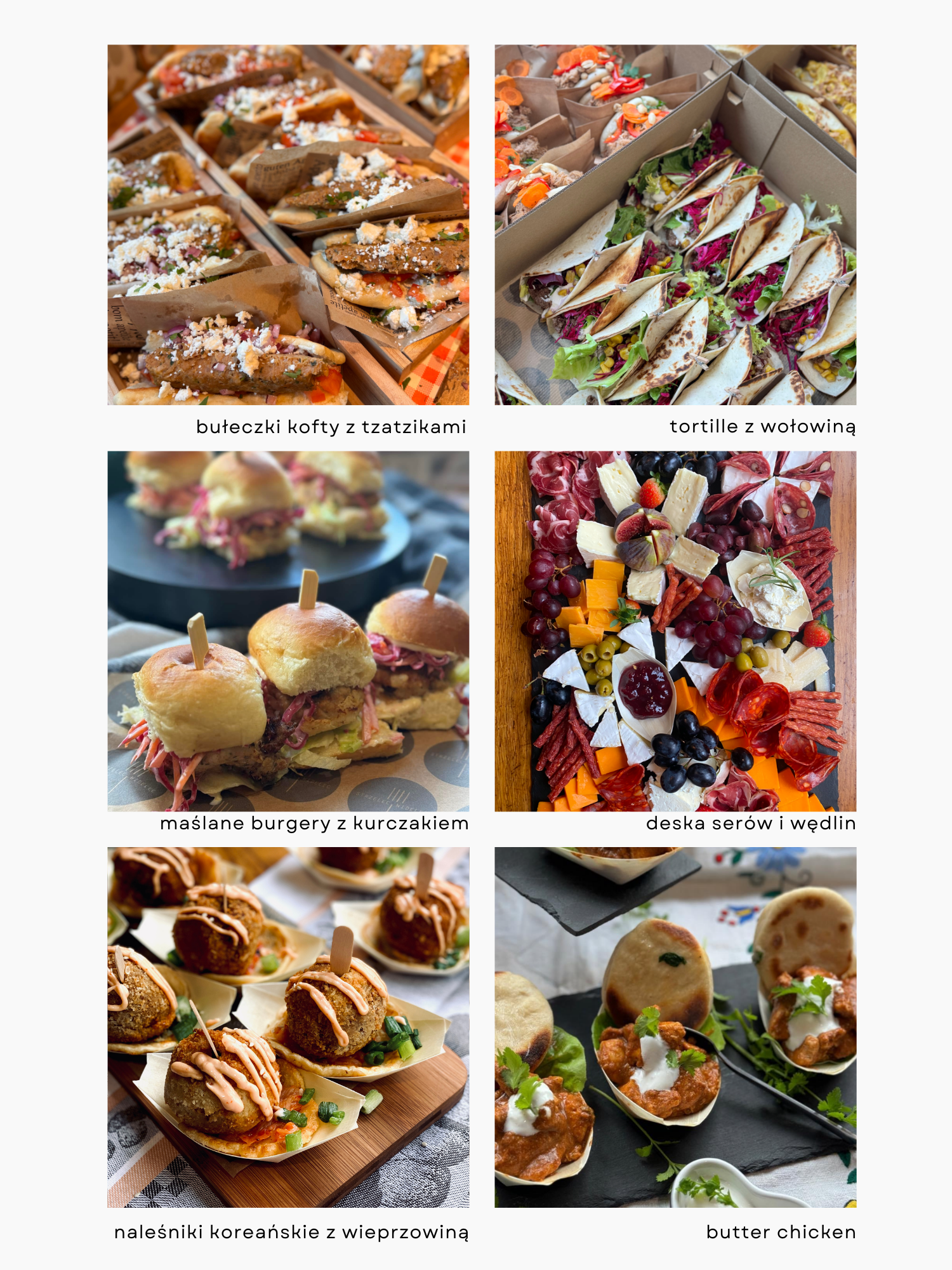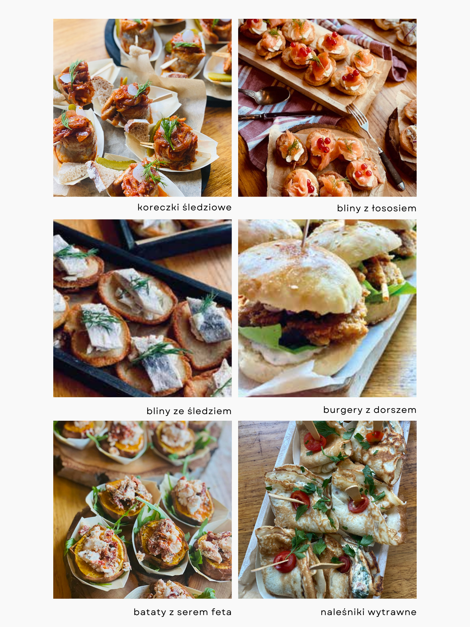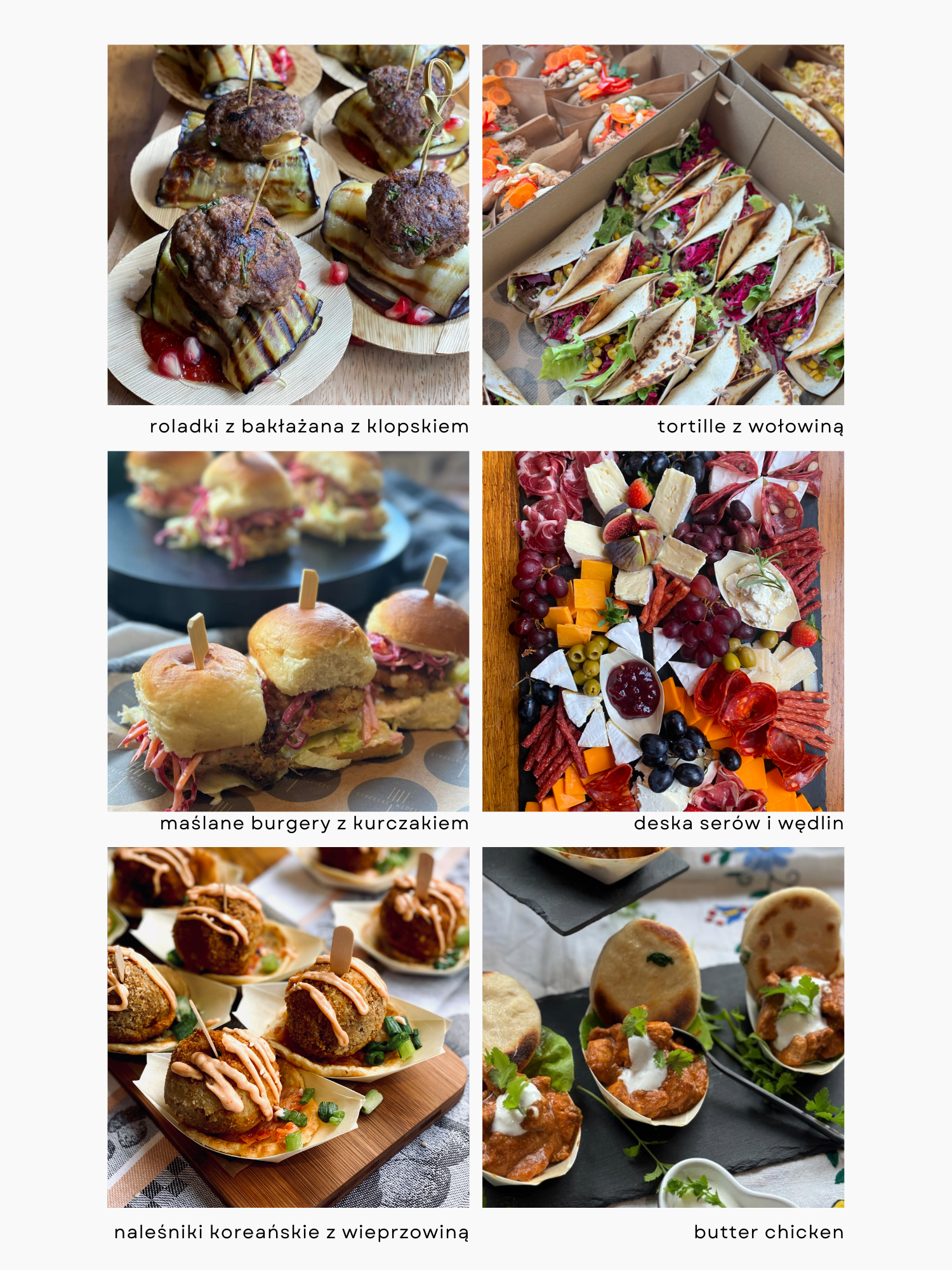 Przekąski mięsne, rybne, wegetariańskie, wegańskie, słodkie, dania obiadowe