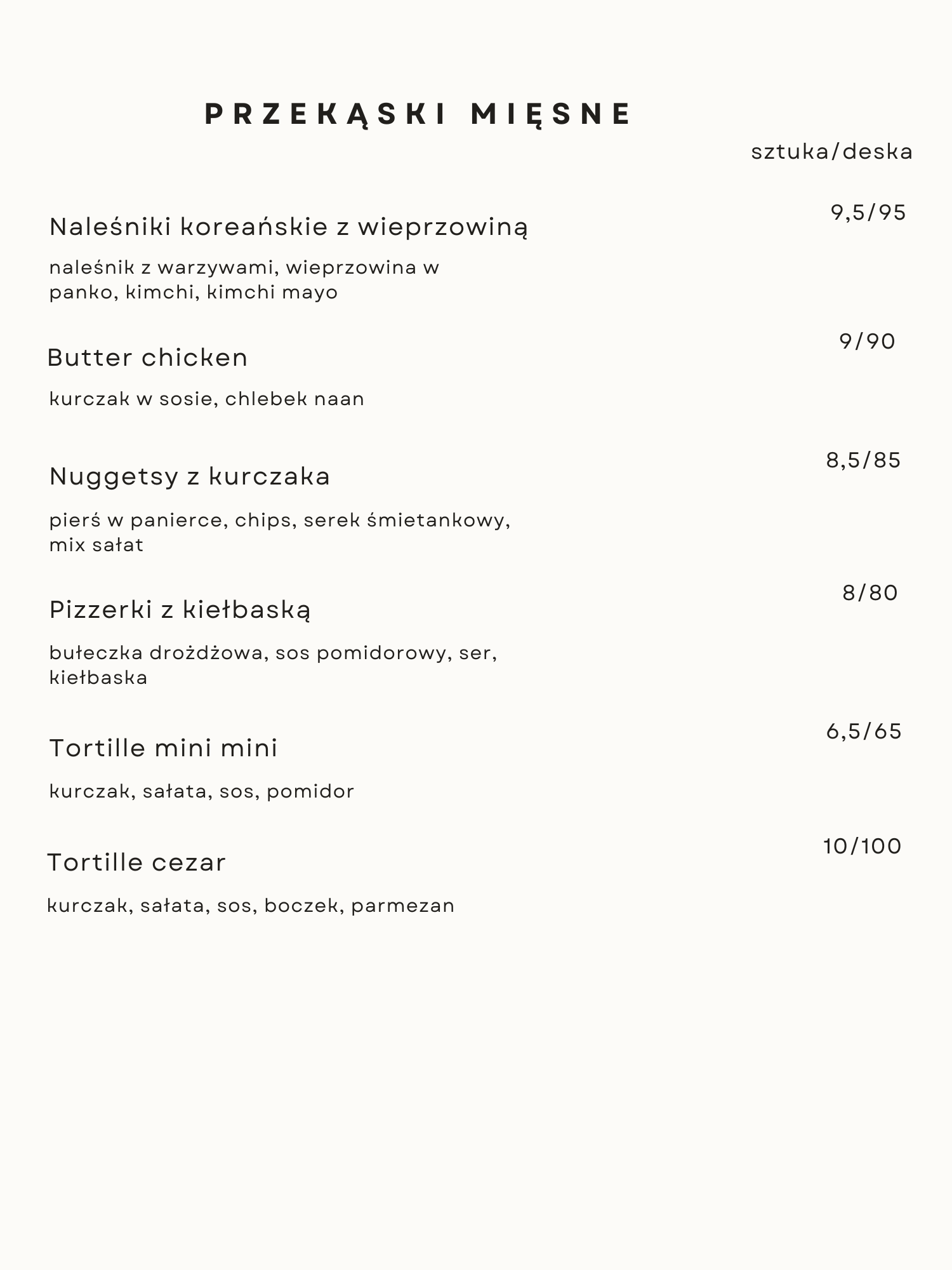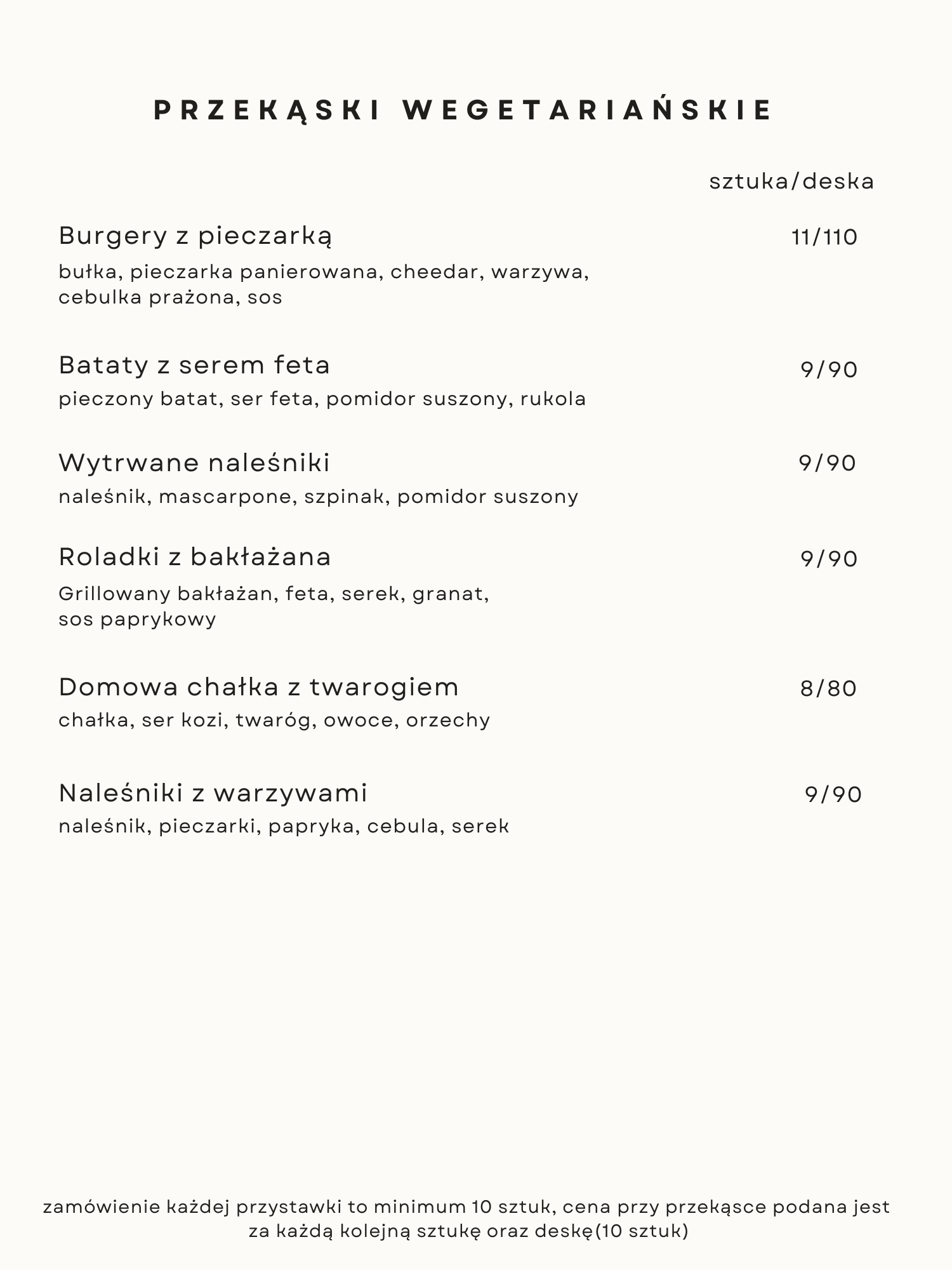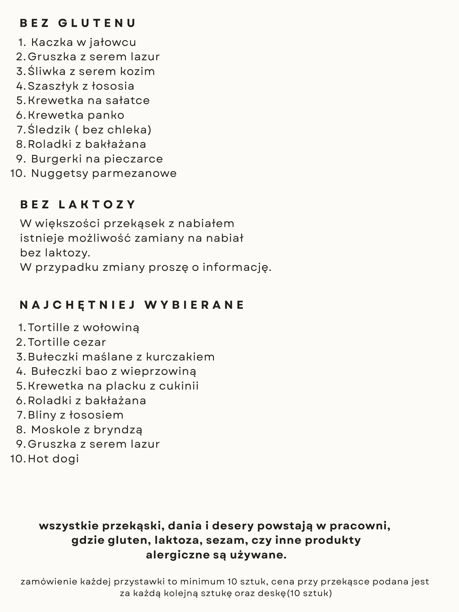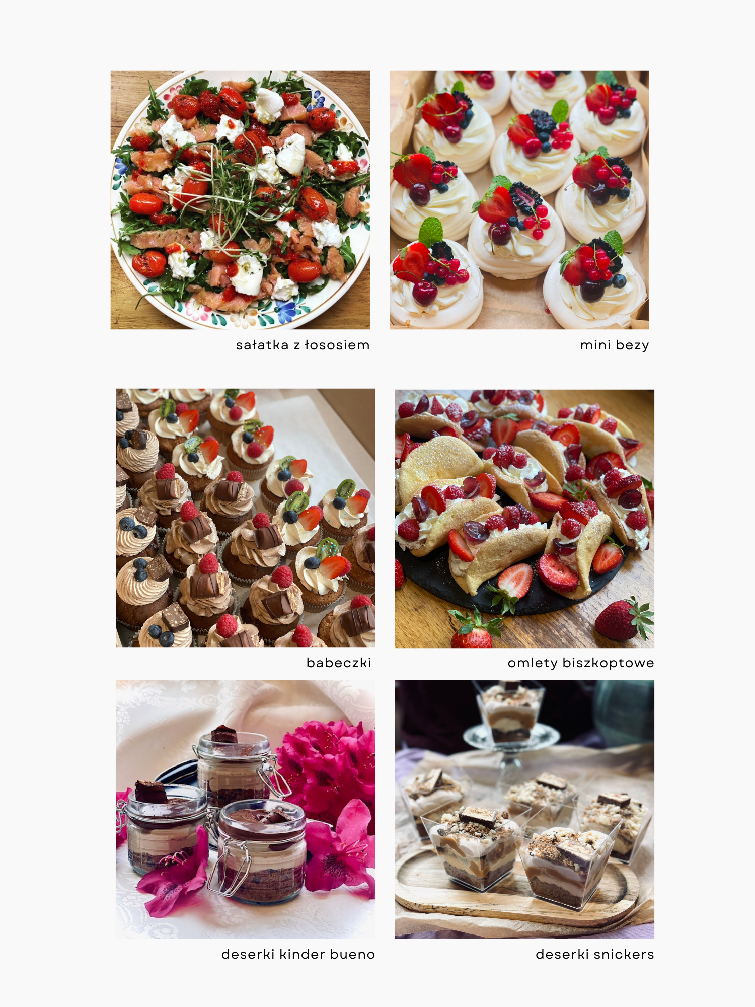 Przekąski mięsne, rybne, wegetariańskie, wegańskie, słodkie, dania obiadowe