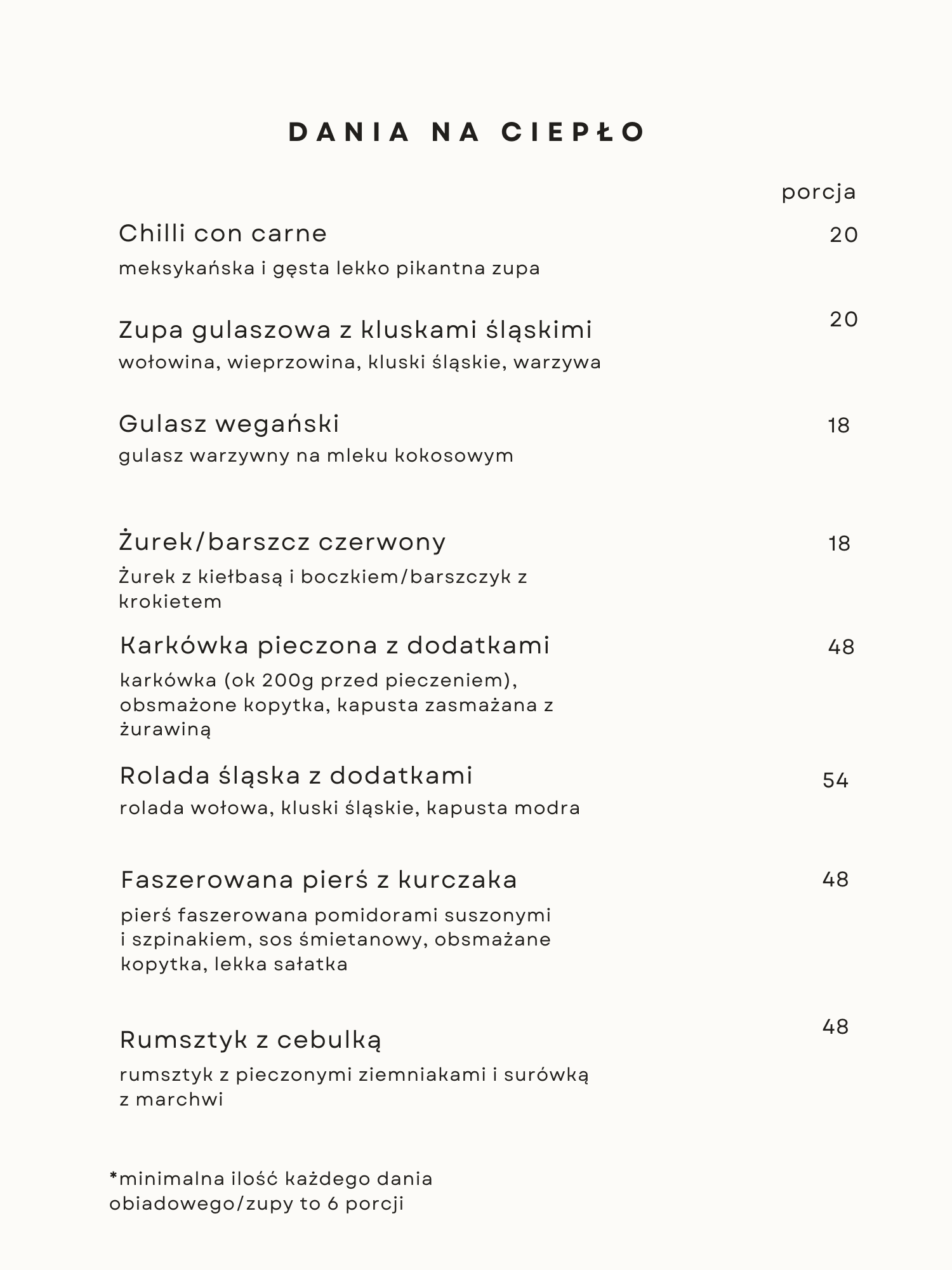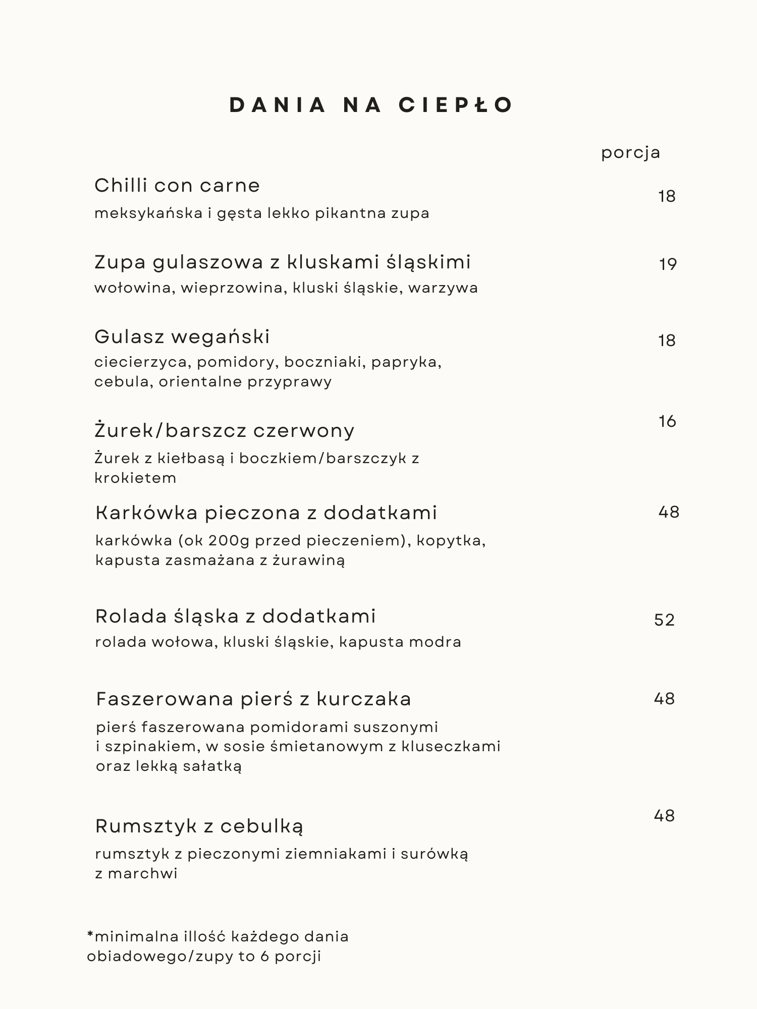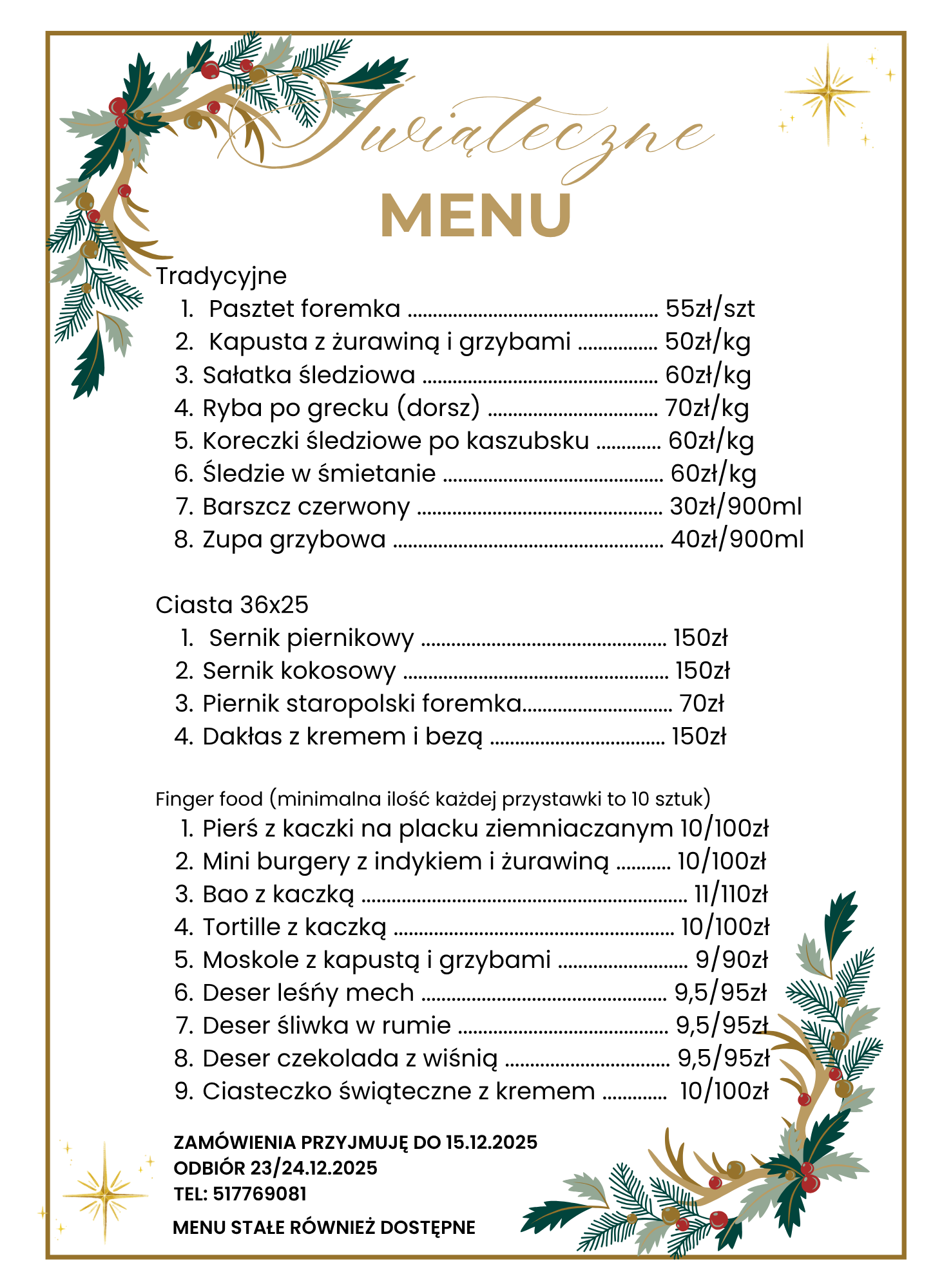 Przejrzyste menu i cennik dostępne na naszej stronie.